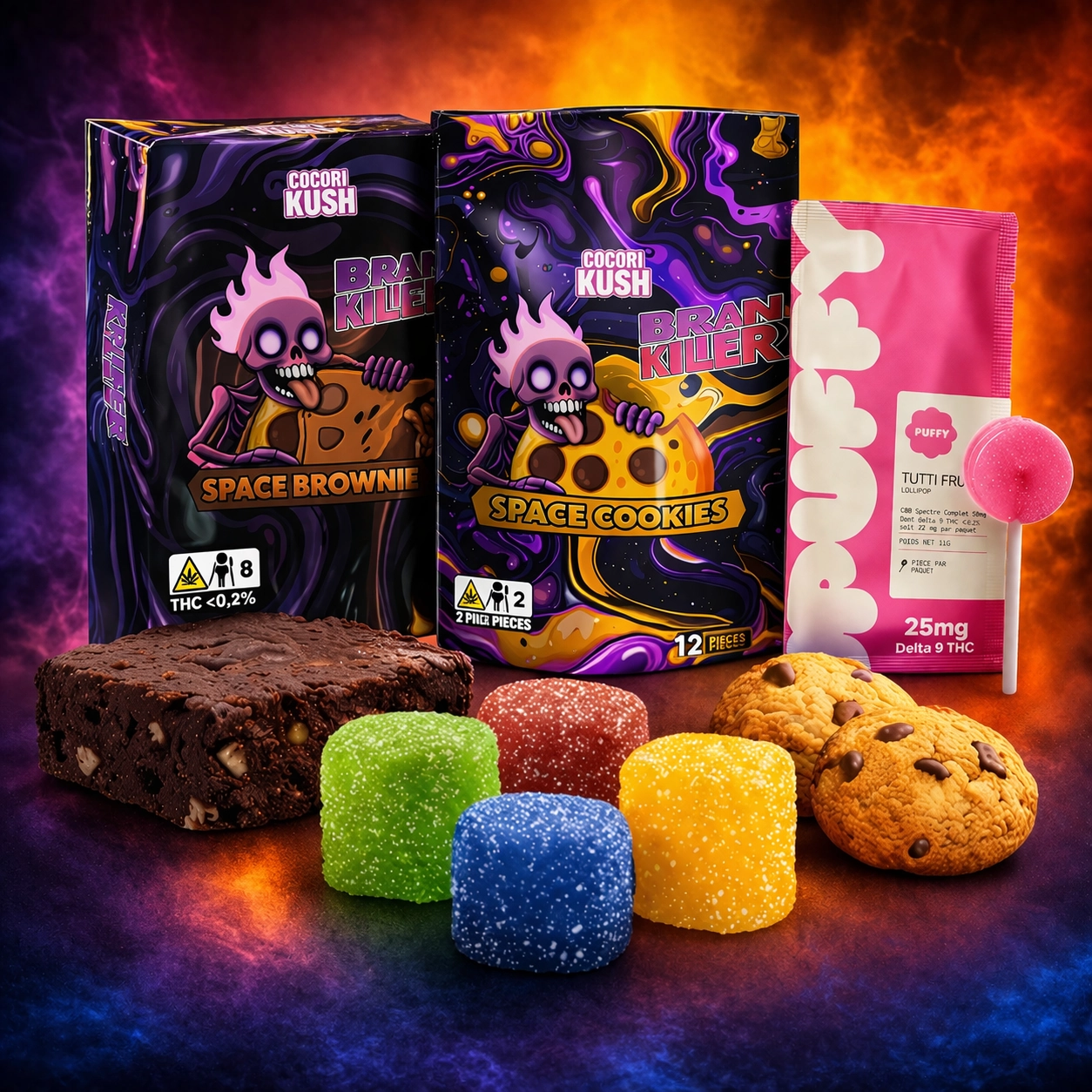 Pack Edibles THC – Brownie, Cookie, Gummies & Sucette Puffy (Delta-9)